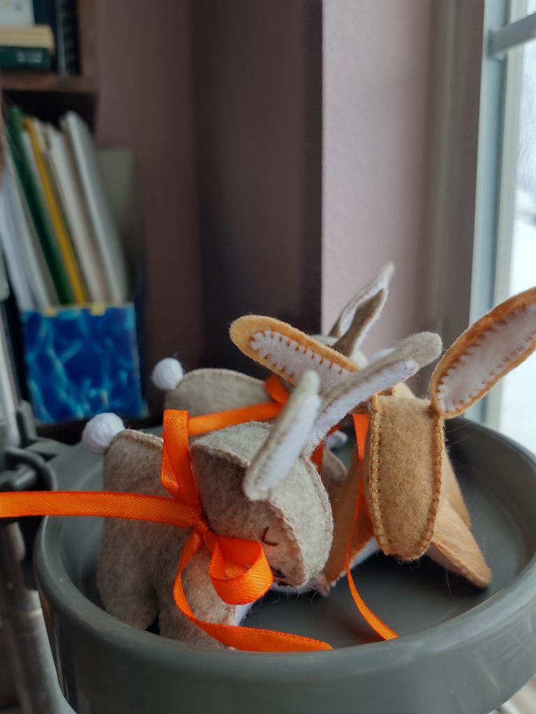 на цьому тижні нарешті закінчила довготривалий проєкт із пошиття зайців для хлопців.