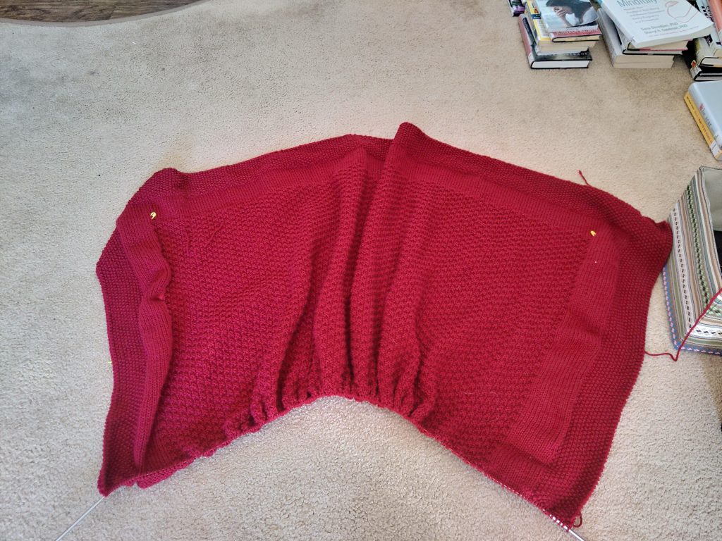 підвиснувши у цьому рукодільному чистиліщі, вирішила переробити пелену до минулорічного светрика Mothed, бо вона мені ще тоді не сподобалася: і довгувато, і якось стягнено, і не в стилі светру. Розплела, вкоротила – закінчила і-кордом. Наче значно краще. Тільки помітила, що пряжа позакочувалася, наче й вдягала його лише кілька разів, а вже весь виворіт полотна дрібними галками взявся.