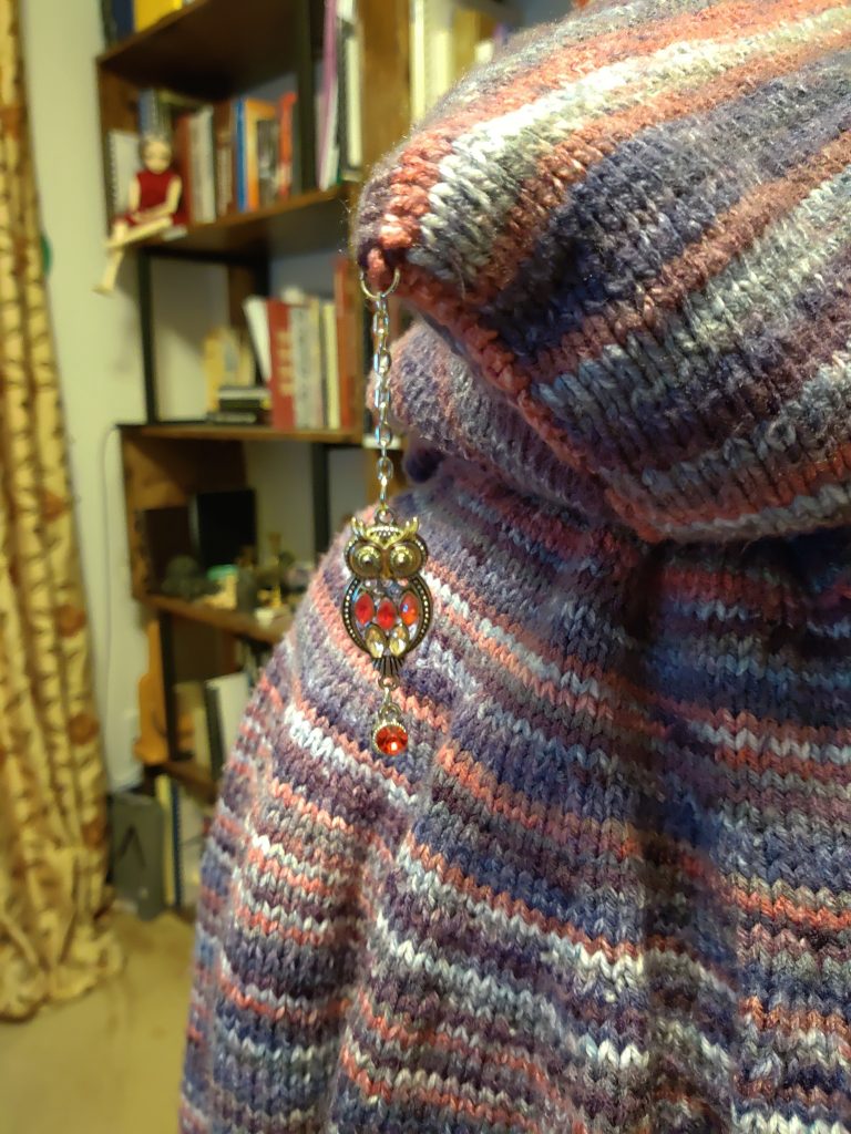 Підвіску-сову на капюшон вибирали удвох із чоловіком. А от гаплики знайшла сама. Стрічка потрібна тільки для краси та підстраховки.