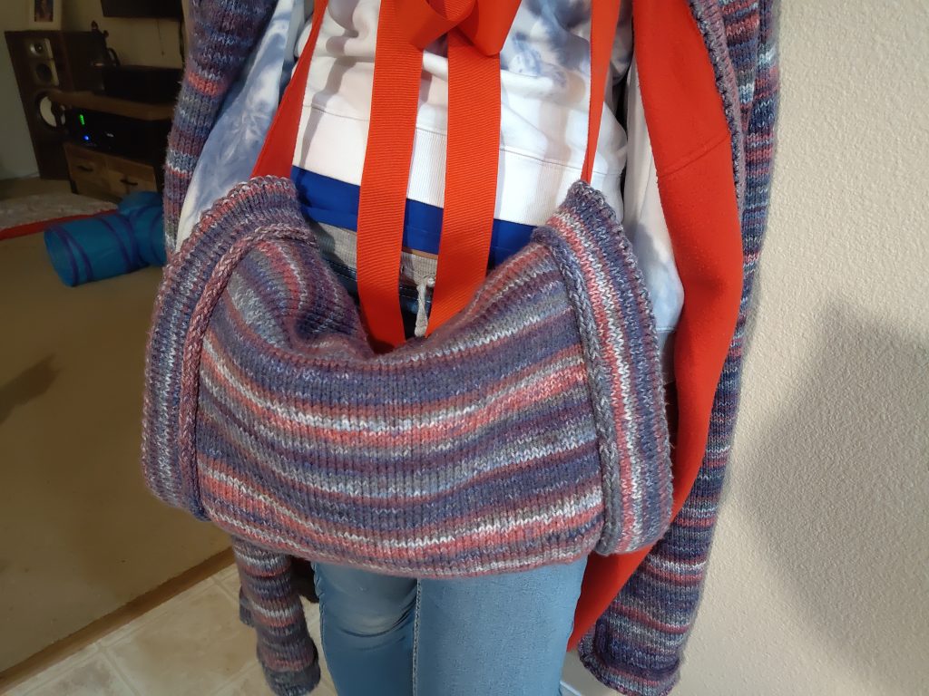 А до Йольських свят до того плаща сплела ще муфту (на усе це щастя разом із муфтою пішло приблизно 15 мотків пряжі, на 12 зламалася записувати). Напевно, варто було зробити трохи меншою, але уже така. Тепла-тепла: підбивка у три шари флісу.