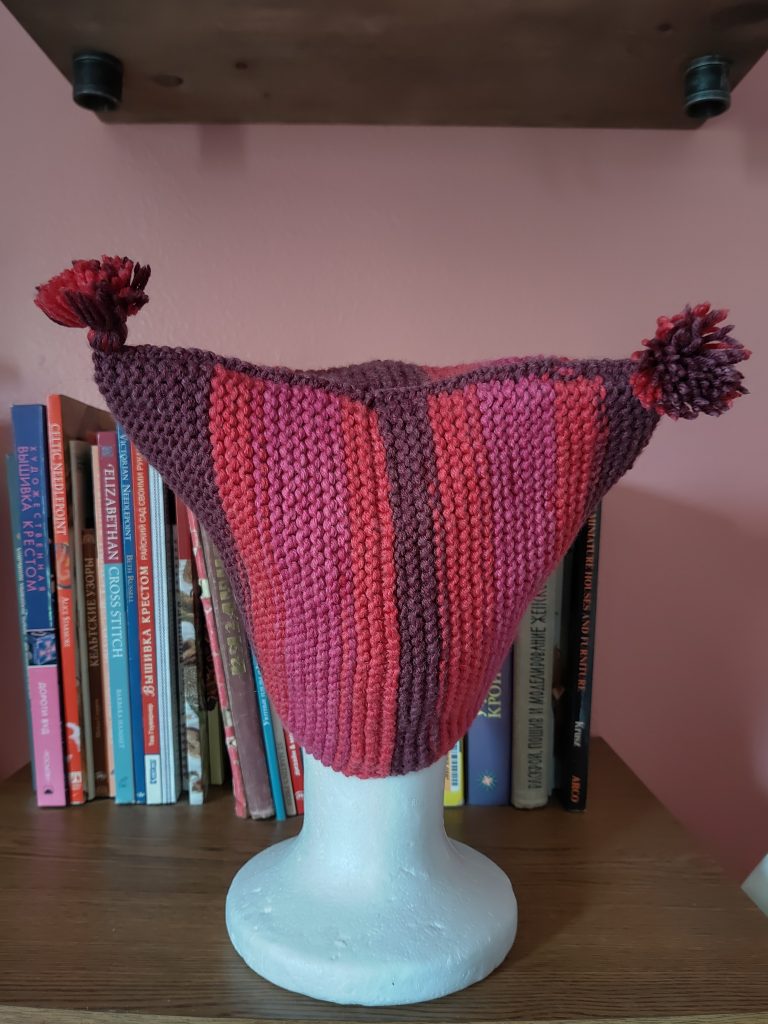 цю шапку – нічого особливого, просто хусткове плетіння у дві нитки (спиці – 5 мм) плела у комплект до бактуса.