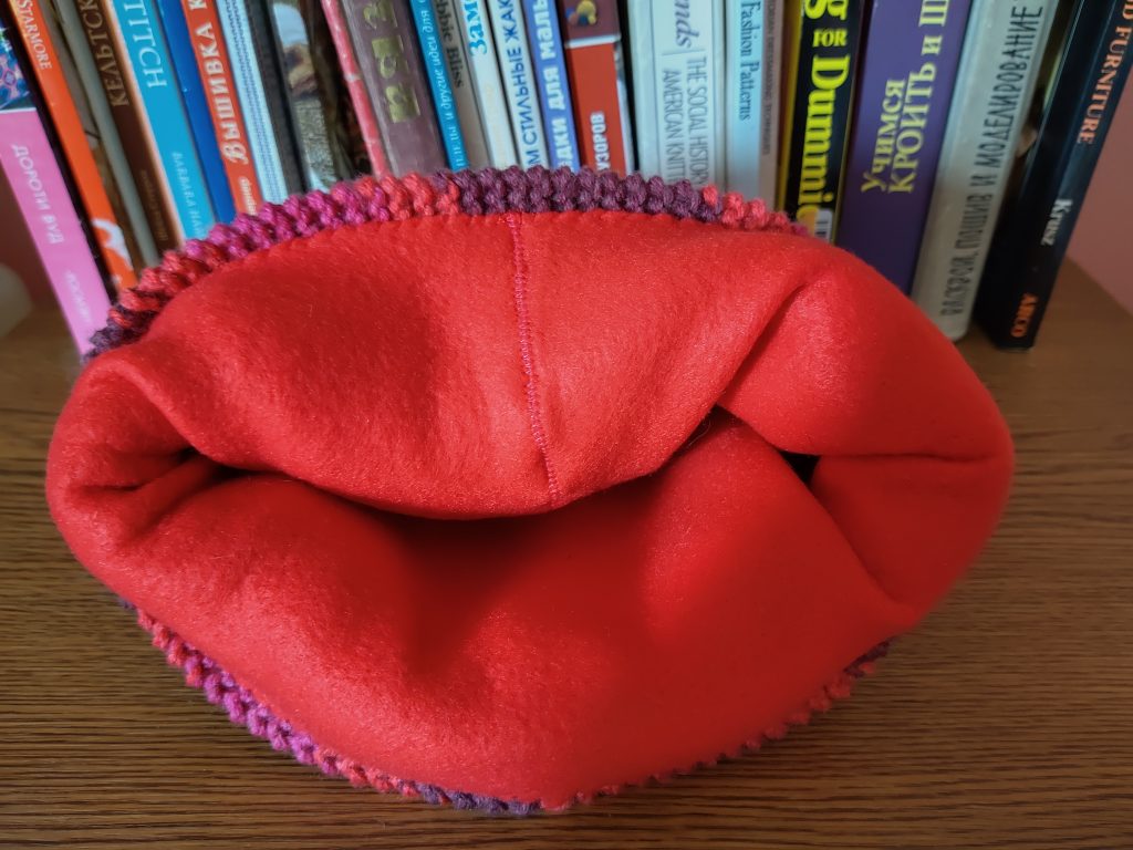 дуже вдало зшила іззаду. Верхнє шво, як завджи, гачком. Флісова підкладка. Капець тепла! Розмір десь 54-58 см.