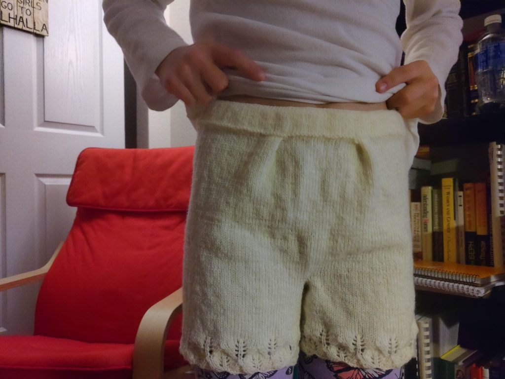 на прохання дочки сплела їй шортики носити під спідницями та сукенками, як холодно. Скористалася схемою “Mommy´s summer shorts” (авторка – Marianne J. Bjerkman; знайшла на ravelry); утім, у половині опису не розібралася, тому вигадувала щось сама. Результатом дуже задоволена. Раніше не було можливості сидіти та спокійно розбиратися у чомусь новому: або сил не вистачало, або часу. Тому тепер отримую багато задоволення від опанування нових навичок і того, як вони втілюються у речах, уможливлюючи їх.