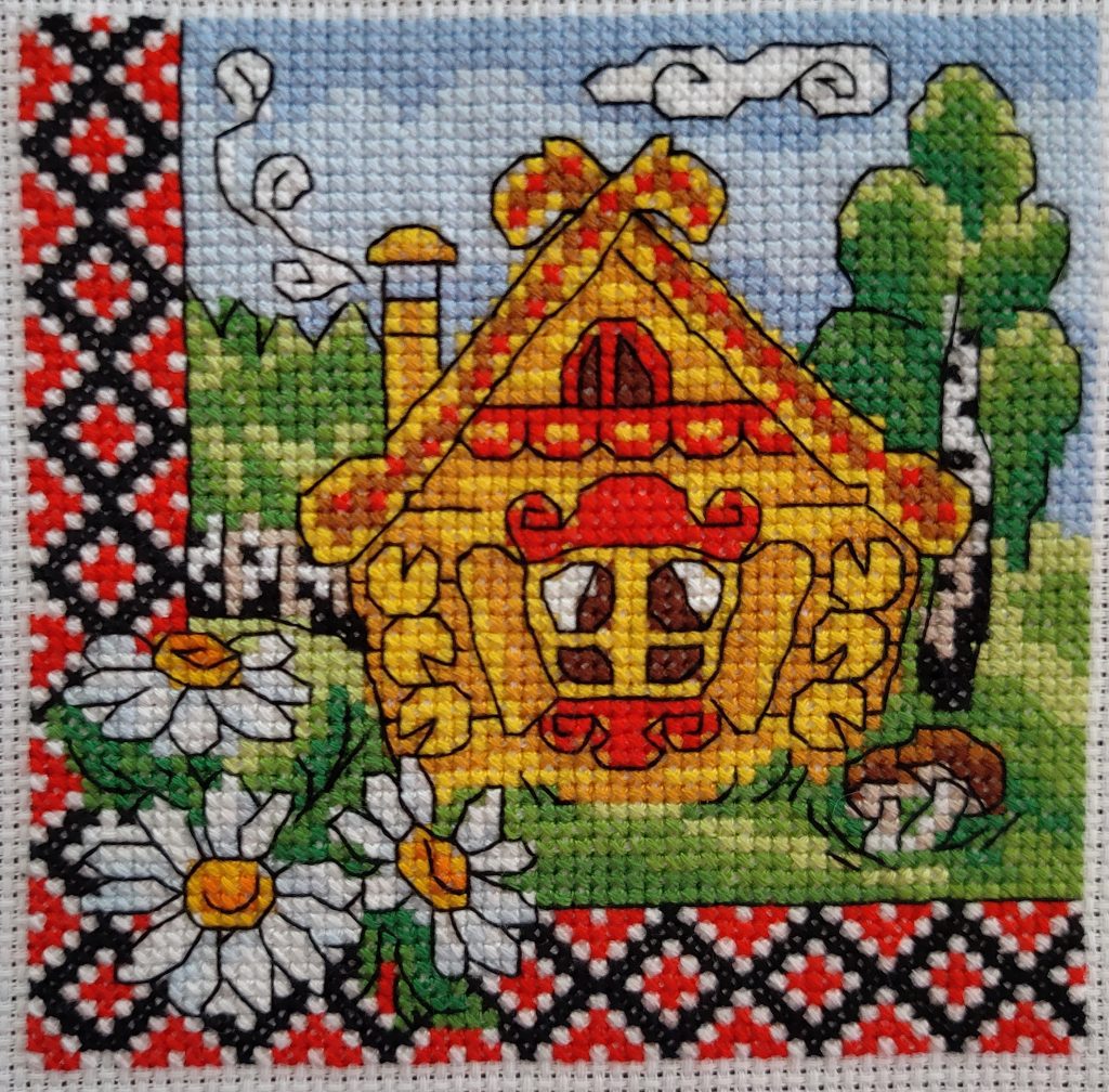 по-перше, вишила останній набір будиночків “Леді”. Він мав би бути теремком, але я прибрала півника та трохи поміняла кольори візерунку, і тепер це просто хатинка. Подібних і в Україні повно.