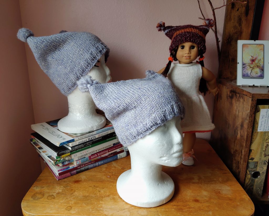 мої “базові” шапки, на флісовій білій підкладці. Одну з них, по-моєму, з помпонами, залишила собі. Ляльці теж перепала така шапочка, із залишків.