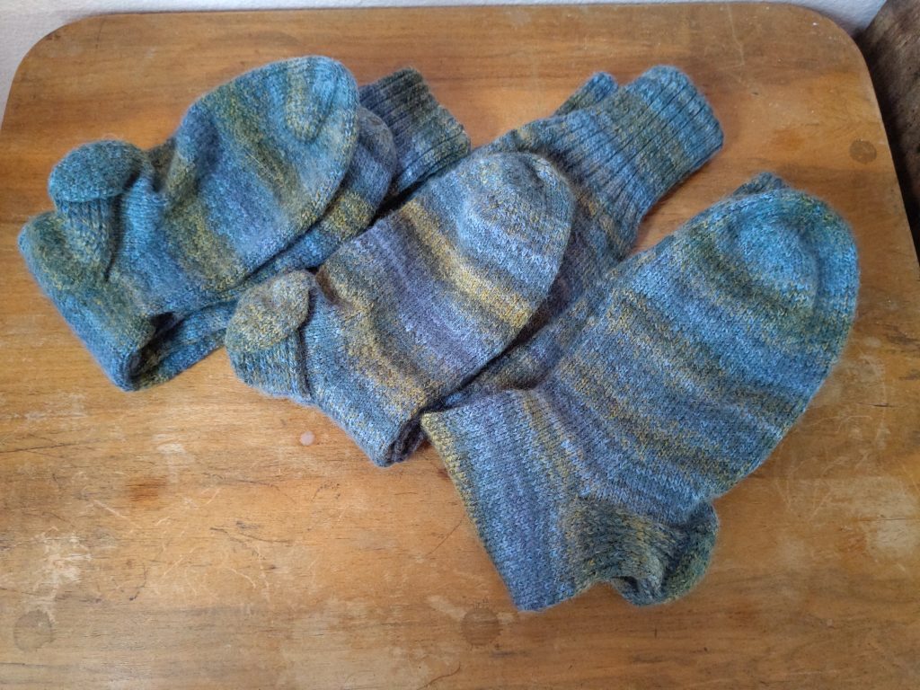 my friend L. For him I’ve knit six projects this year. Two of them I showed before – Add-a-booties and Spiral socks. Here is the rest.